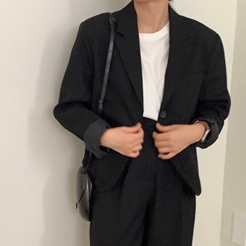 スタンダードショートジャケット ハイウェストウェストカジュアルパンツ レディース レトロ 韓国婦人7543674499