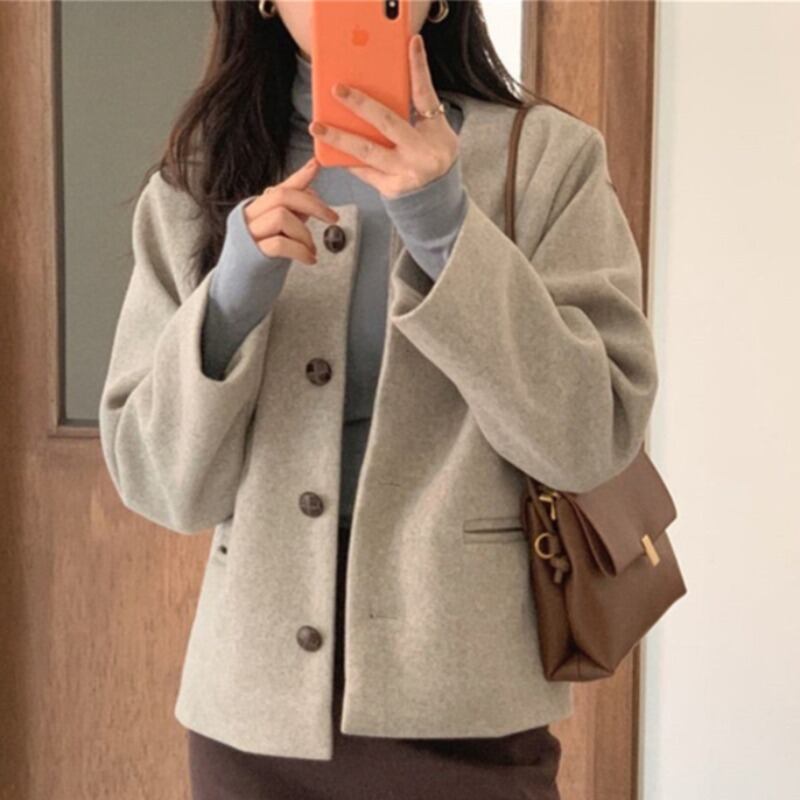 オータムラウンドネックショートコート ジャケット レディース 秋物 Oネック 韓国婦人23311311837