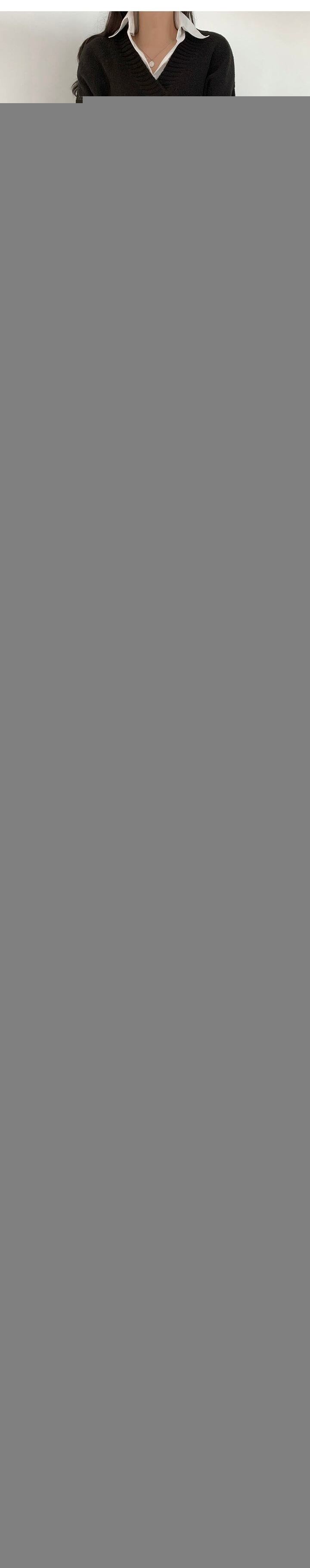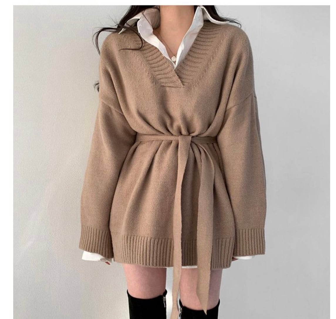 スタンダードスタイルVネックルーズプルオーバー セーター シャツ ニット ロング レトロ 韓国婦人46726503196
