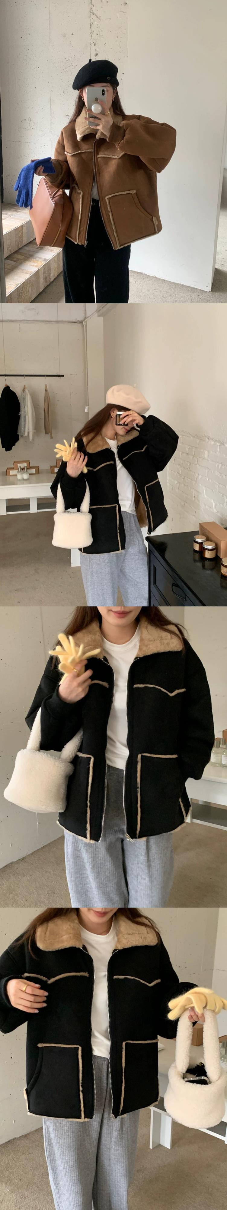 インニッチレトロオートバイぬいぐるみファーオールインワン厚く暖かいラペルジッパージャケット女性 韓国婦人83201764022