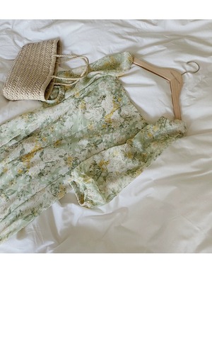 フレンチジェントル初恋花柄パフスリーブドレス レディース サマーリゾートスタイル ビーチドレス ミドル丈 シフォンスカート 夏物 韓国婦人89223295584