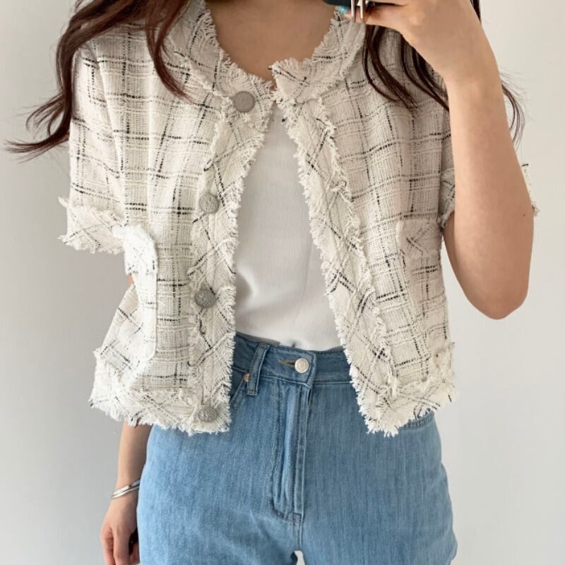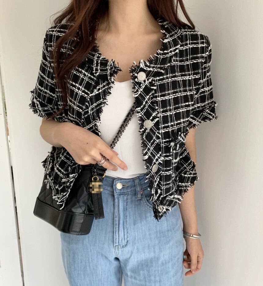 2022 夏の新シックな半袖ジャケット女性の薄いインターネットセレブレトロスタイルカーディガンショートトップ サマー 夏物 韓国婦人47471597187