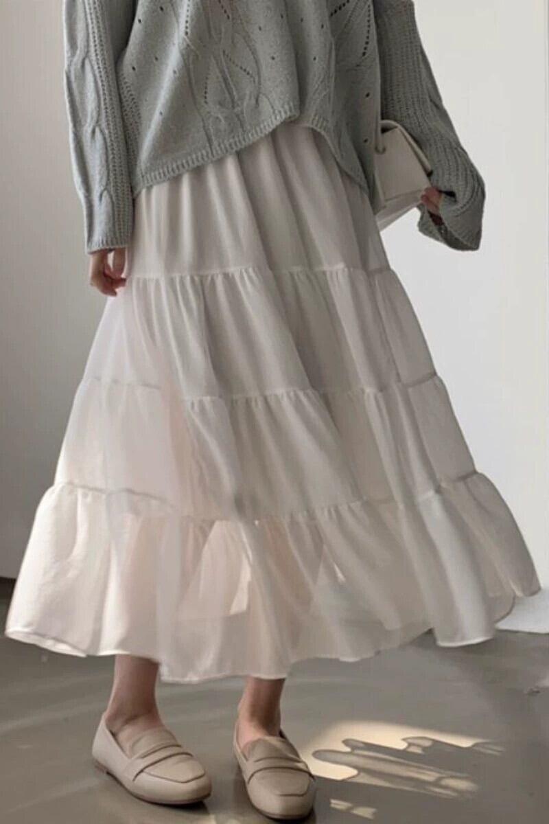 シックな夏の新しいハイウエスト痩身多用途パッチワークケーキスカートプリンセススカートレトロシフォンスカート女性 サマー 夏物 韓国婦人70052823231