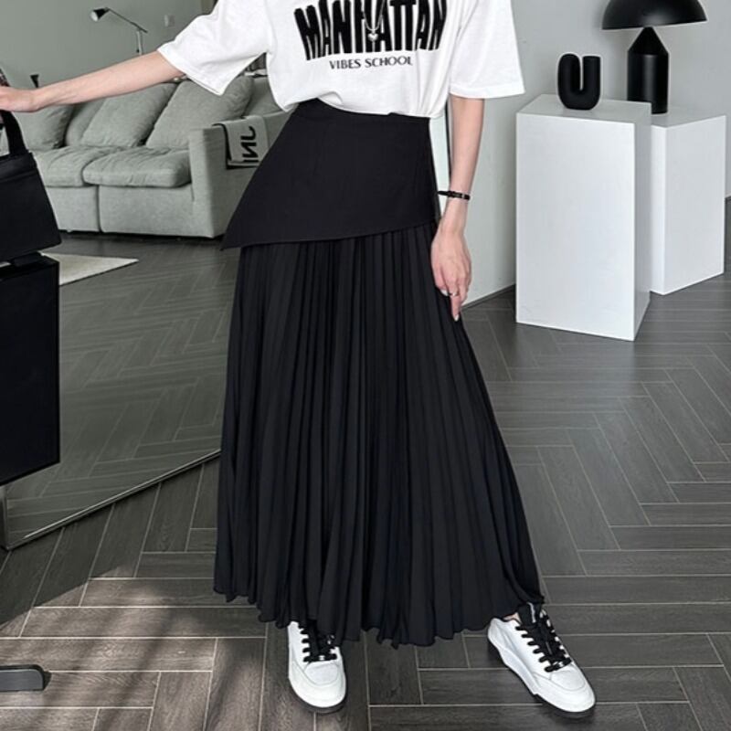 シックなニッチスタイルプリーツスカート女性初秋インハイウエストスリムミドル丈スカート ハイウェスト オータム 秋物 韓国婦人371500826