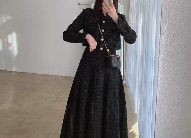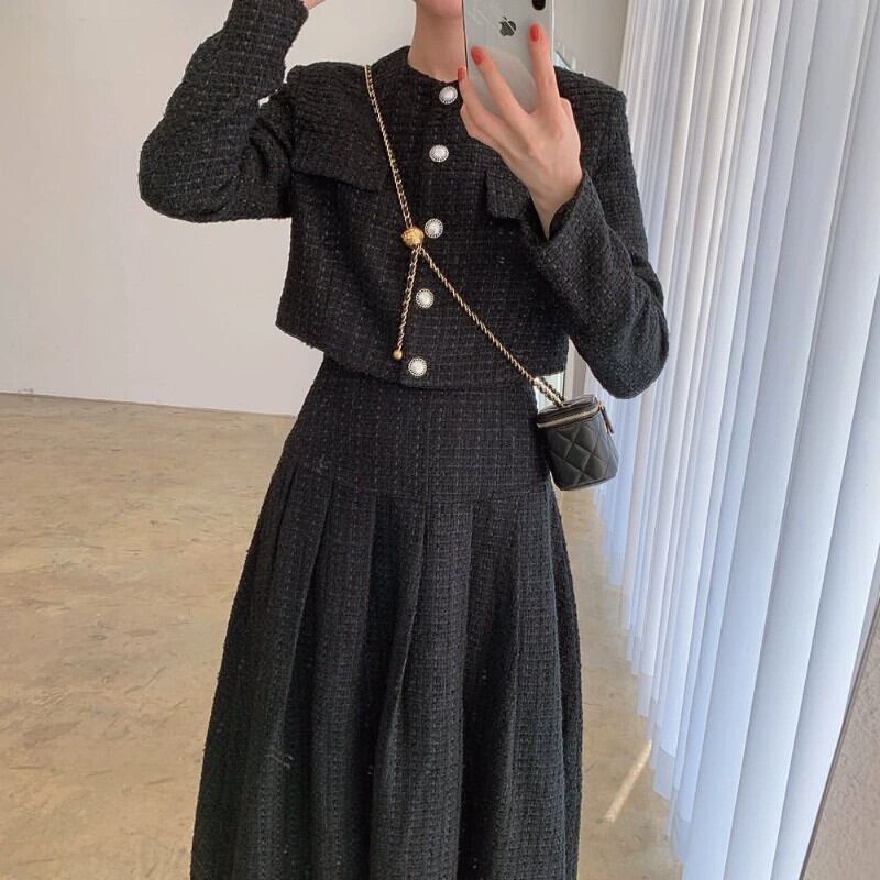 フレンチシックな気質の小さな香りのスーツの女性の秋の新しいショートブレザーハイウエストスカートツーピースセット ハイウェスト オータム 秋物 韓国婦人60403424313