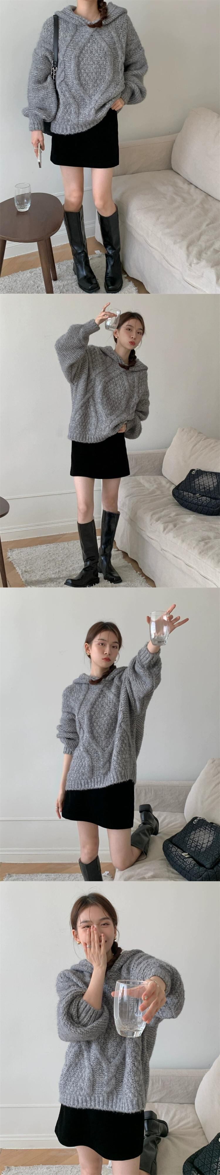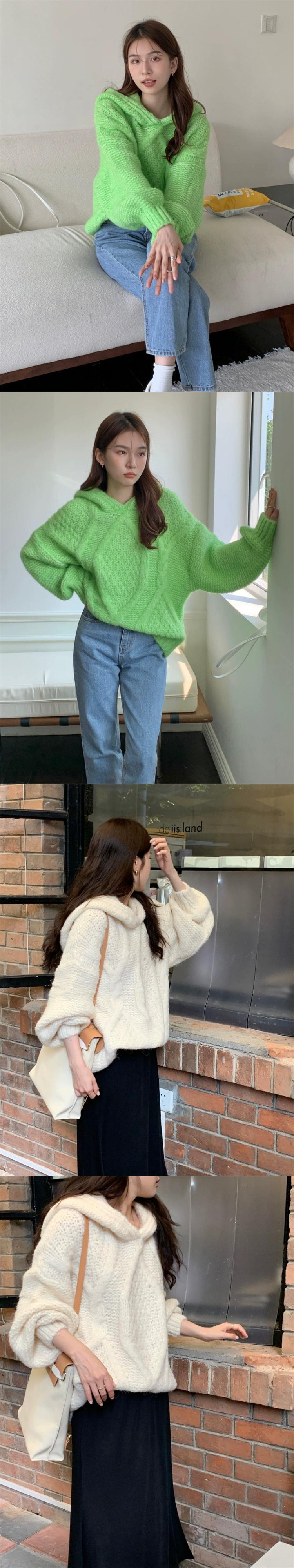 甘い老化を軽減するフード付きツイストルーズ長袖プルオーバーセーター女性の秋と冬の優しいスタイルカジュアルセータートップ ロング 大人ガーリー スウィート キュート オータム 秋物 ウィンター 冬物 韓国婦人81312827009