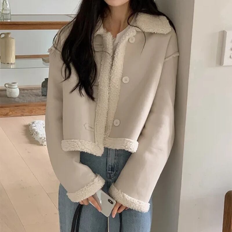 スタイルシックな優しい気質の毛皮ワンピースリバーシブルコート女性秋と冬の小さなシングルブレストショートトップ オータム 秋物 ウィンター 冬物 韓国婦人96968266692